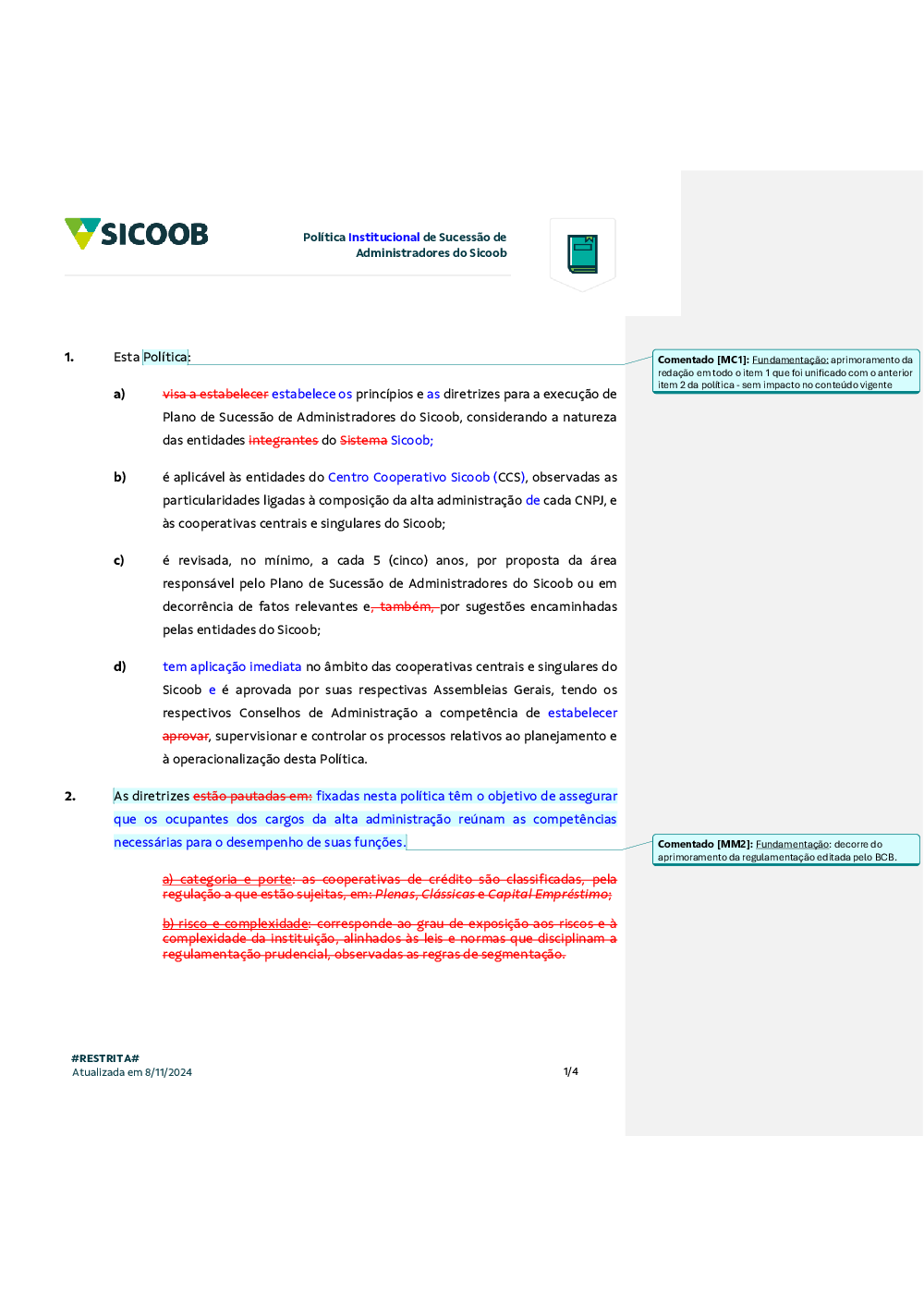 Alterações da Politica Inst. de Sucessão de Adm. do Sicoob