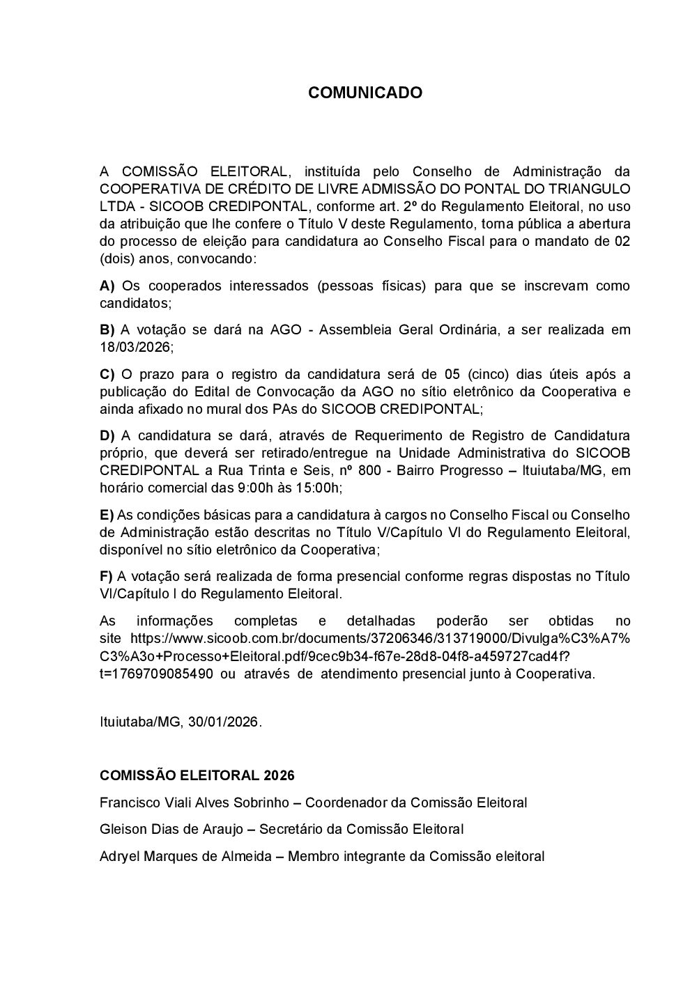 Divulgação Processo Eleitoral