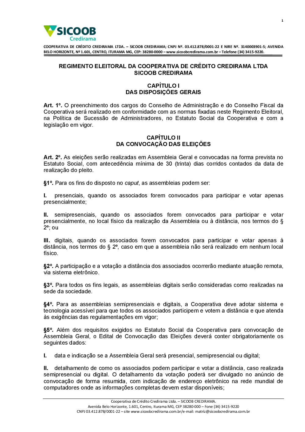 COOPERATIVA DE CRÉDITO DA REGIÃO DE ITURAMA LTDA – SICOOB CREDIRAMA; CNPJ Nº 03