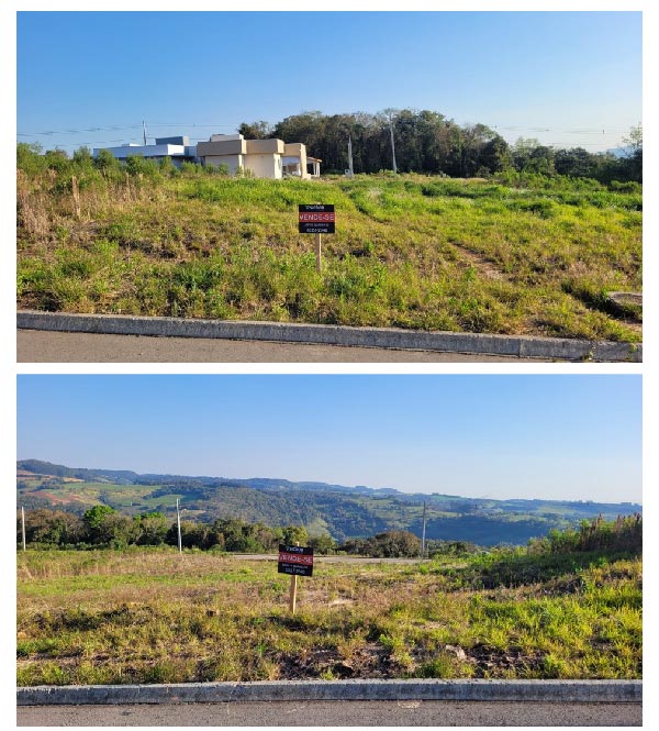 Disponível: 8 terrenos urbanos no Loteamento Porto Seguro Residencial em Herval d’ Oeste/SC com 300 m de estrada britada, a 3,5KM do centro de Joaçaba.