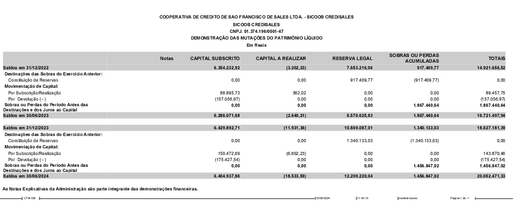 3º - 3167_Demonstrações das Mutações do Patrimônio Líquido 06-2024