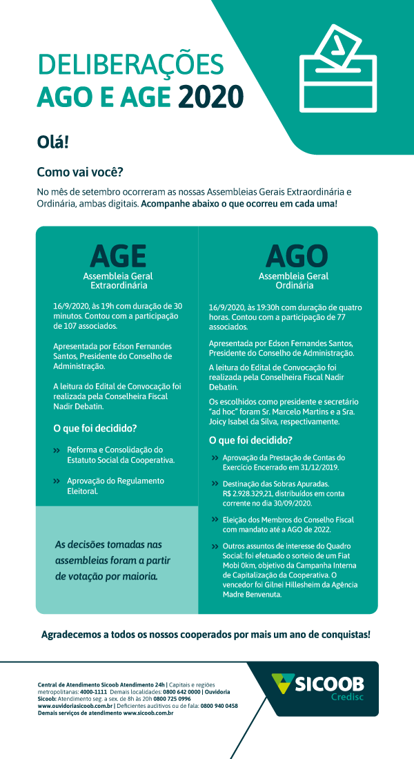 Abaixo, você confere as Publicações Assembleares do Sicoob Credisc.