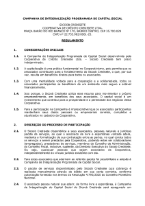 CAMPANHA DE INTEGRALIZAÇÃO PROGRAMADA DE CAPITAL SOCIAL - Relatórios - Sicoob Credisete
