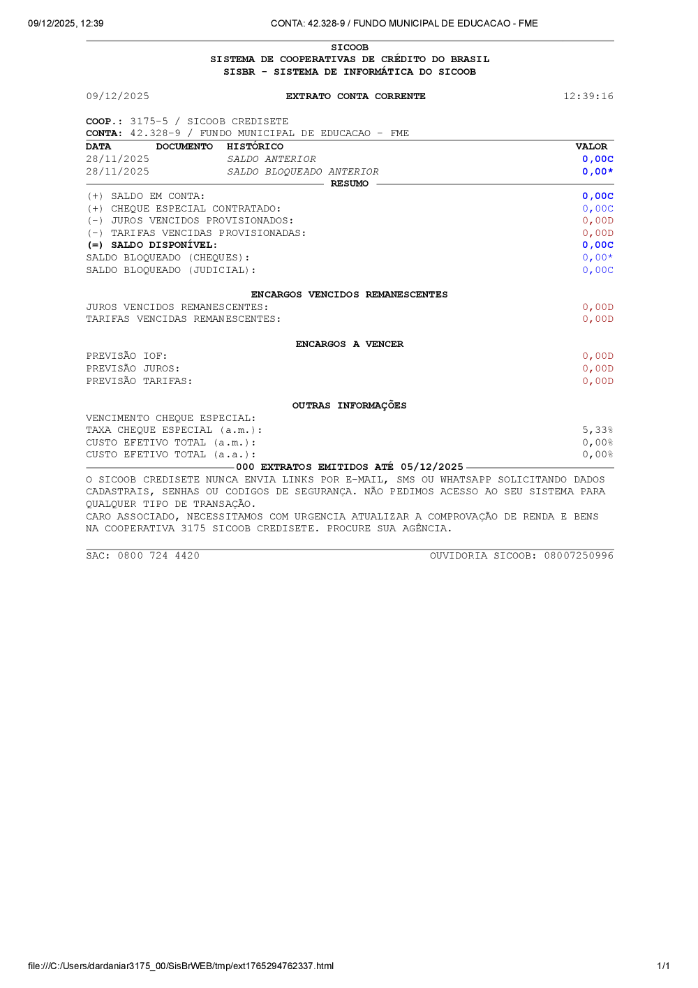 CONTA: 42.328-9 / FUNDO MUNICIPAL DE EDUCACAO - FME