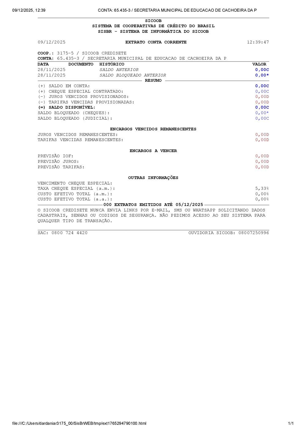 CONTA: 65.435-3 / SECRETARIA MUNICIPAL DE EDUCACAO DE CACHOEIRA DA P