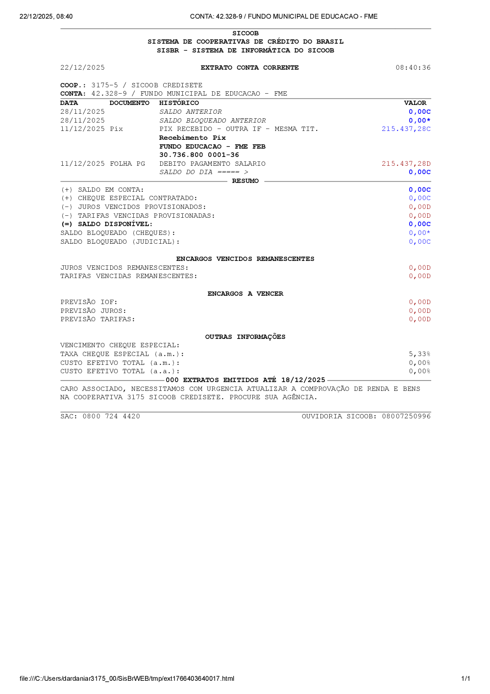 Transparência na divulgação dos extratos, movimentações e informações oficiais das contas vinculadas ao Fundeb.
