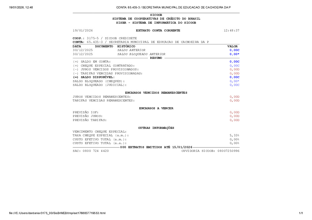 CONTA: 65.435-3 / SECRETARIA MUNICIPAL DE EDUCACAO DE CACHOEIRA DA P