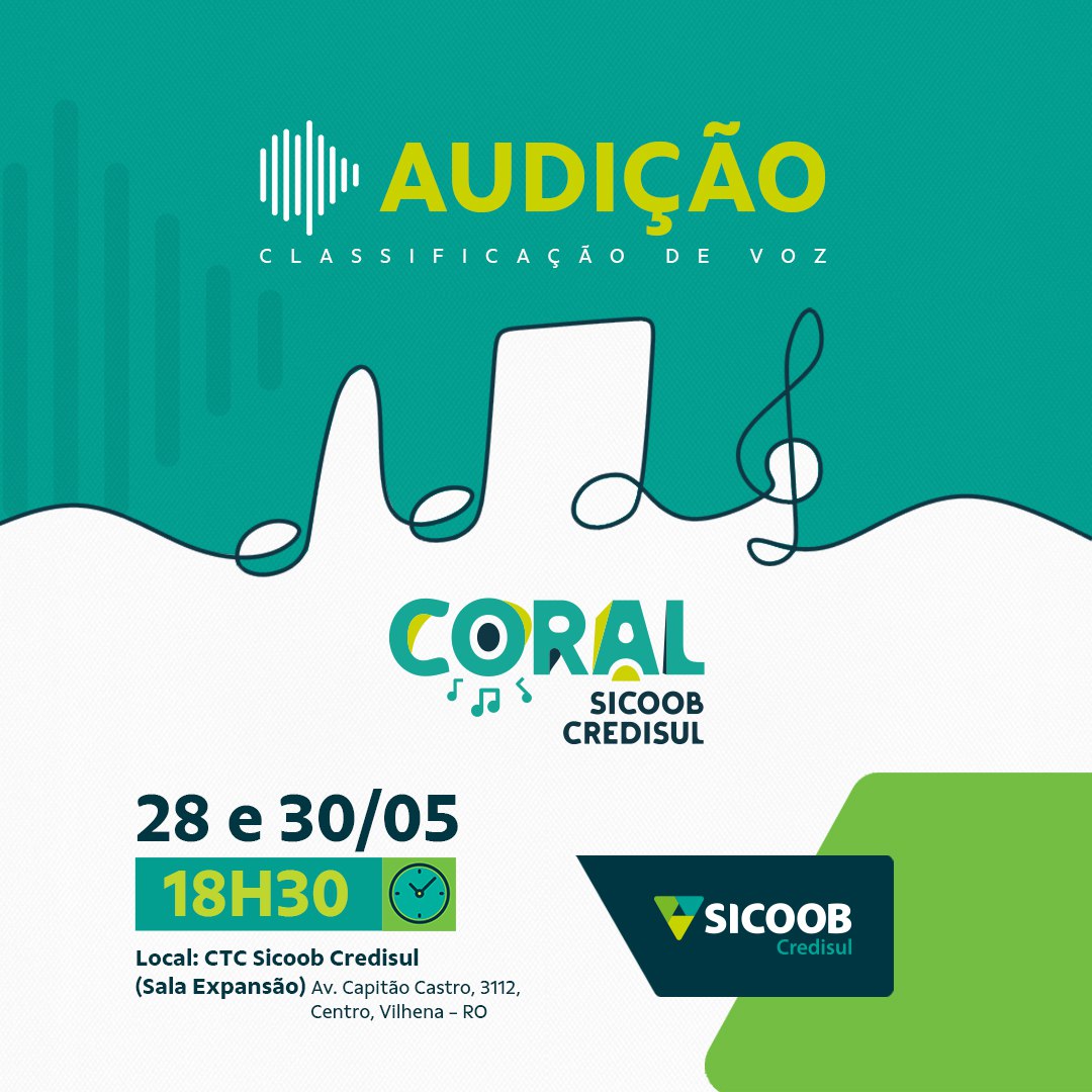 O Coral Sicoob Credisul está à procura de novos talentos para integrar o grupo. Se você é apaixonado por música e mora em Vilhena (RO) essa é sua chance. As audições acontecerão nos dias 28 e 30 de maio, a partir das 18h30, no Centro de Treinamento e Cultura Sicoob Credisul, localizado na Av. Capitão Castro, 3112.