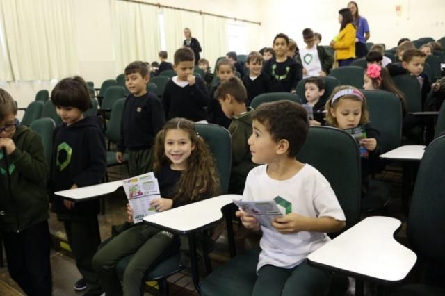 A visita aconteceu no colégio Satc de Criciúma, contemplando os alunos do 1º ano da instituição
