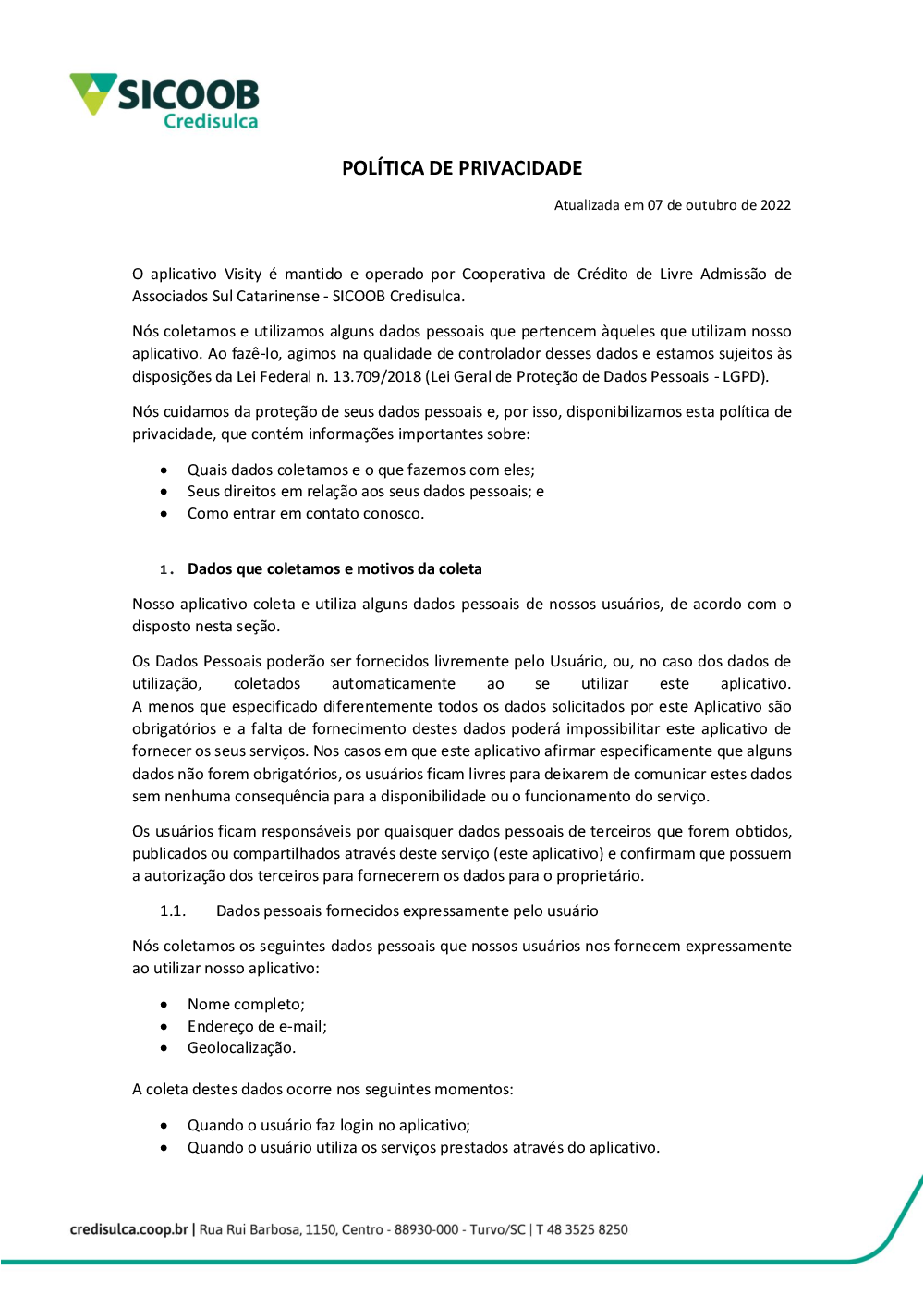 Política de privacidade - Aplicativo Visity - Sicoob Credisulca.pdf