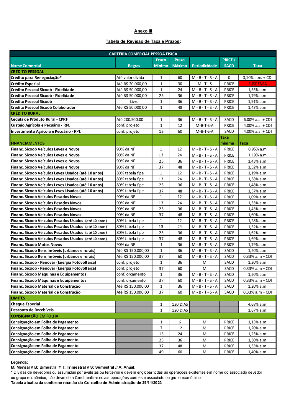 TABELA DE TAXAS E PRAZOS - LINHAS DE CRÉDITO PF