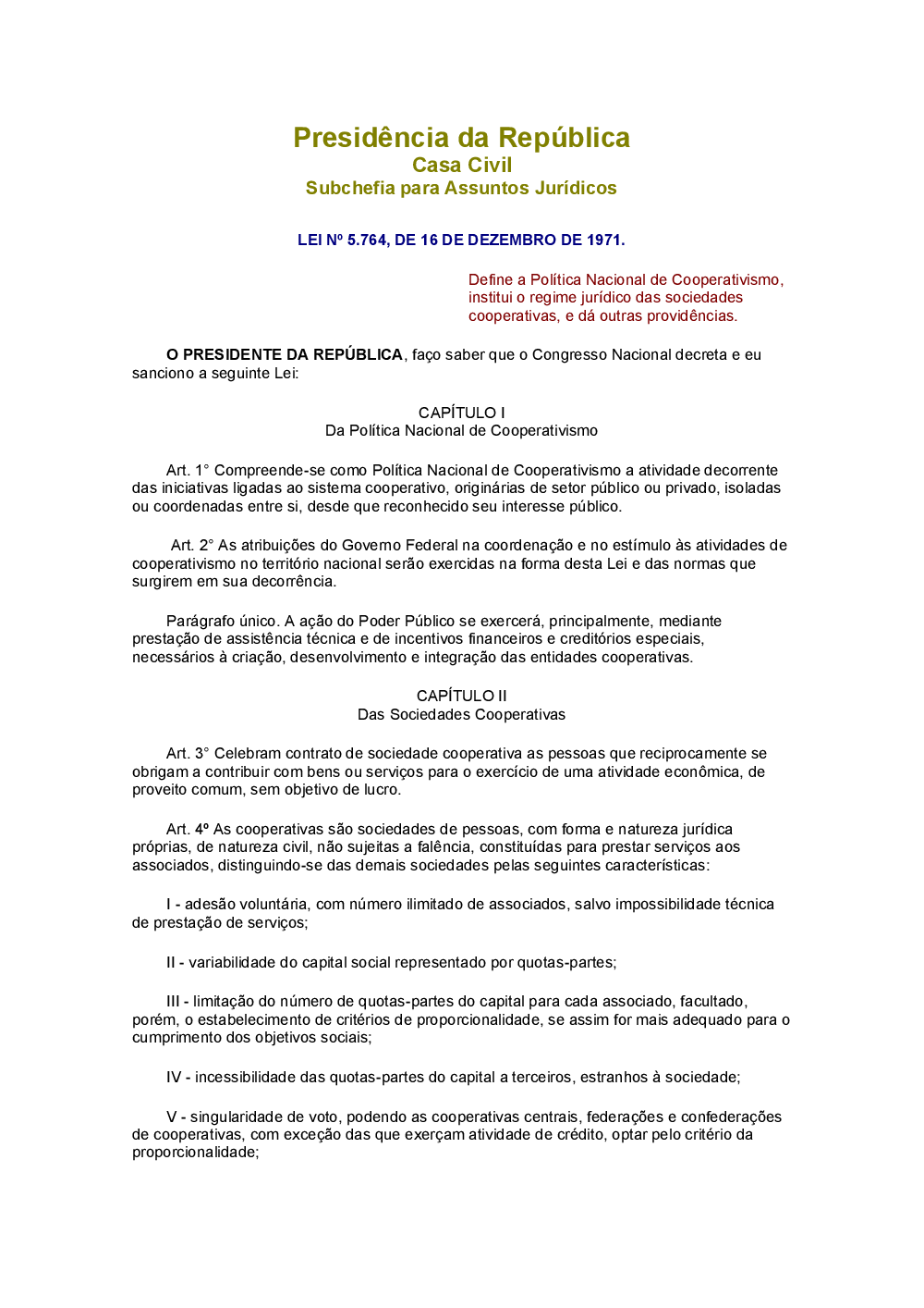 LEI Nº 5.764, DE 16 DE DEZEMBRO DE 1971