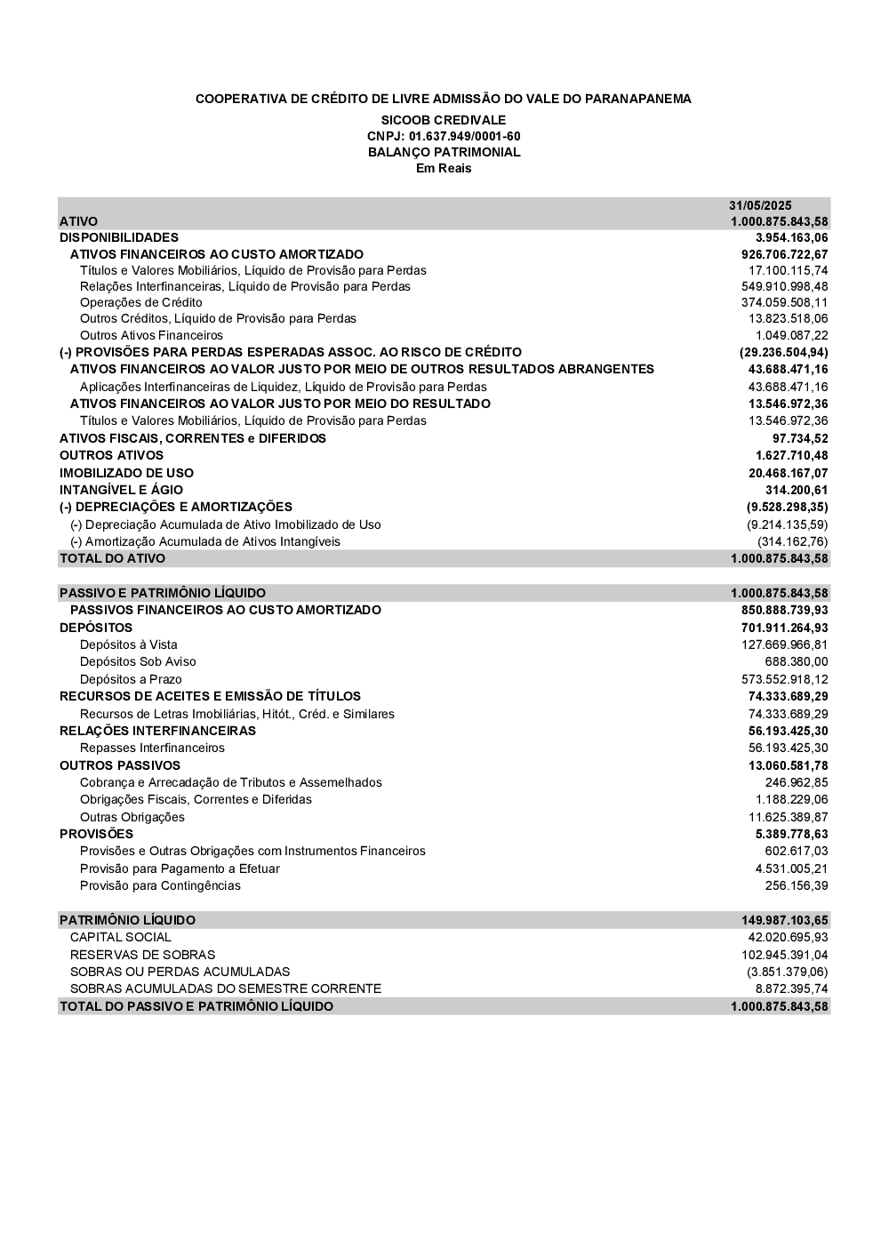 Relatórios - Sicoob Credivale SP