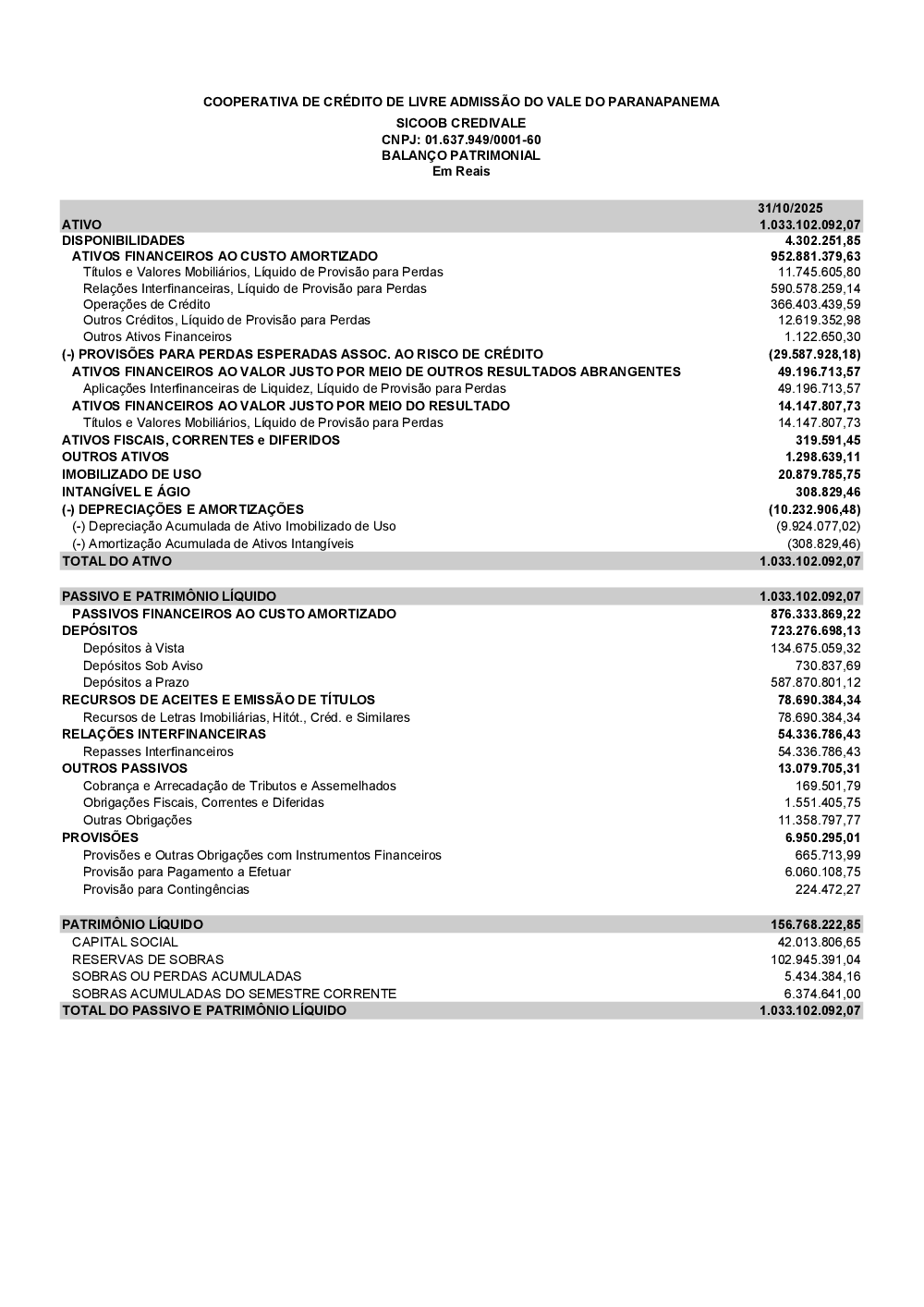 Relatórios - Sicoob Credivale SP