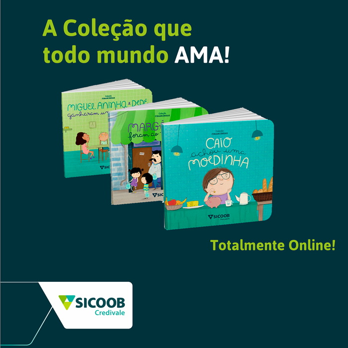 Três livros de Educação Financeira compõem a Coleção Financinhas, um material criado pelo Instituto Sicoob para falar sobre sonhos, desejos, necessidades e poupança com o público infantil. São histórias do cotidiano contadas de maneira lúdica para que as crianças cresçam com senso crítico e mais responsáveis com relação ao dinheiro.