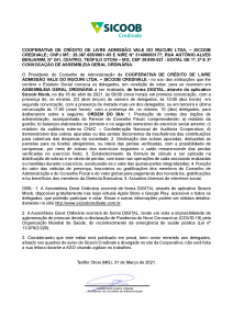 Convocação AGO 2021 - Relatórios - Sicoob Credivale MG
