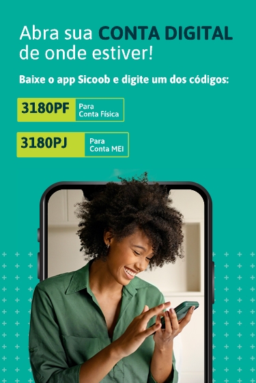 Já pensou ter todos os benefícios de uma conta corrente digital em uma instituição onde você é dono ou dona? Onde você tem voz, participação dos resultados e poder de decisão? Aqui no Sicoob você pode! Baixe o app e venha fazer parte!