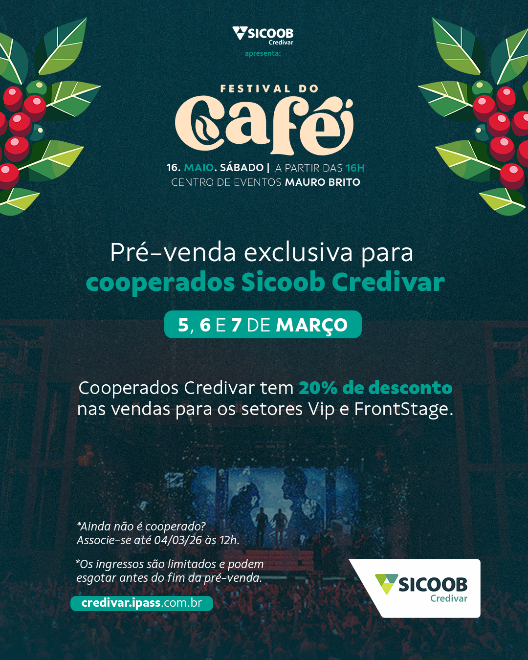 Sicoob Credivar anuncia pré-venda exclusiva para cooperados no Festival do Café 2026