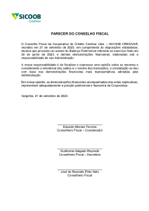 Demonstrações Contábeis - 1º Semestre 2023 - Relatórios - Sicoob Credivar