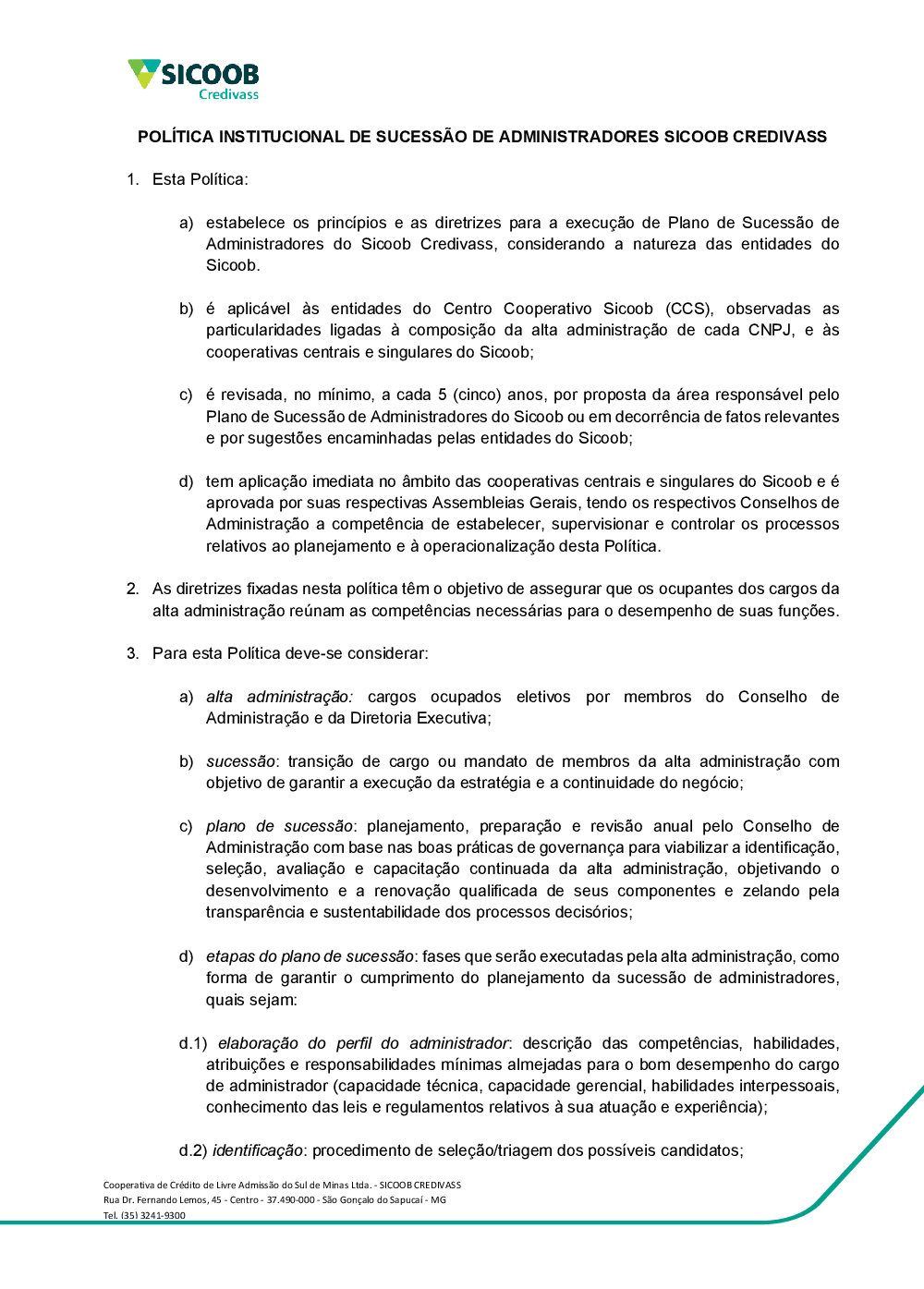 Política e Plano de Sucessão Sicoob Credivass 2025