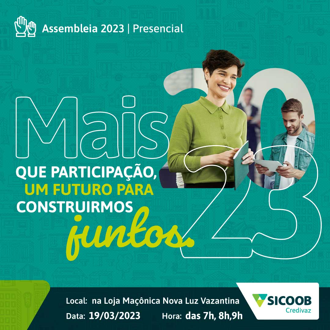 A Cooperativa de Crédito Credivaz Ltda. – Sicoob Credivaz, por meio do Presidente do Conselho de Administração, convoca seus Associados, que nesta data são 7.402 (Sete mil, quatrocentos e dois), em condições de votar, para se reunirem em ASSEMBLEIA GERAL EXTRAORDINÁRIA e ORDINÁRIA, a ser realizada no dia 19 de março de 2023, de forma PRESENCIAL, na Rua Três de Maio, nº 550, Bairro Independência, na Loja Maçônica Nova Luz Vazantina, na cidade de VAZANTE (MG), às 7:00 (sete horas), em primeira convocação, com a presença de 2/3 (dois terços) dos associados; às 08:00 (oito horas), em segunda convocação, com a presença de metade dos associados mais um; ou às 09:00 (nove horas), em terceira e última convocação, com a presença mínima de 10 (dez) associados, para deliberarem sobre a seguinte ordem do dia: