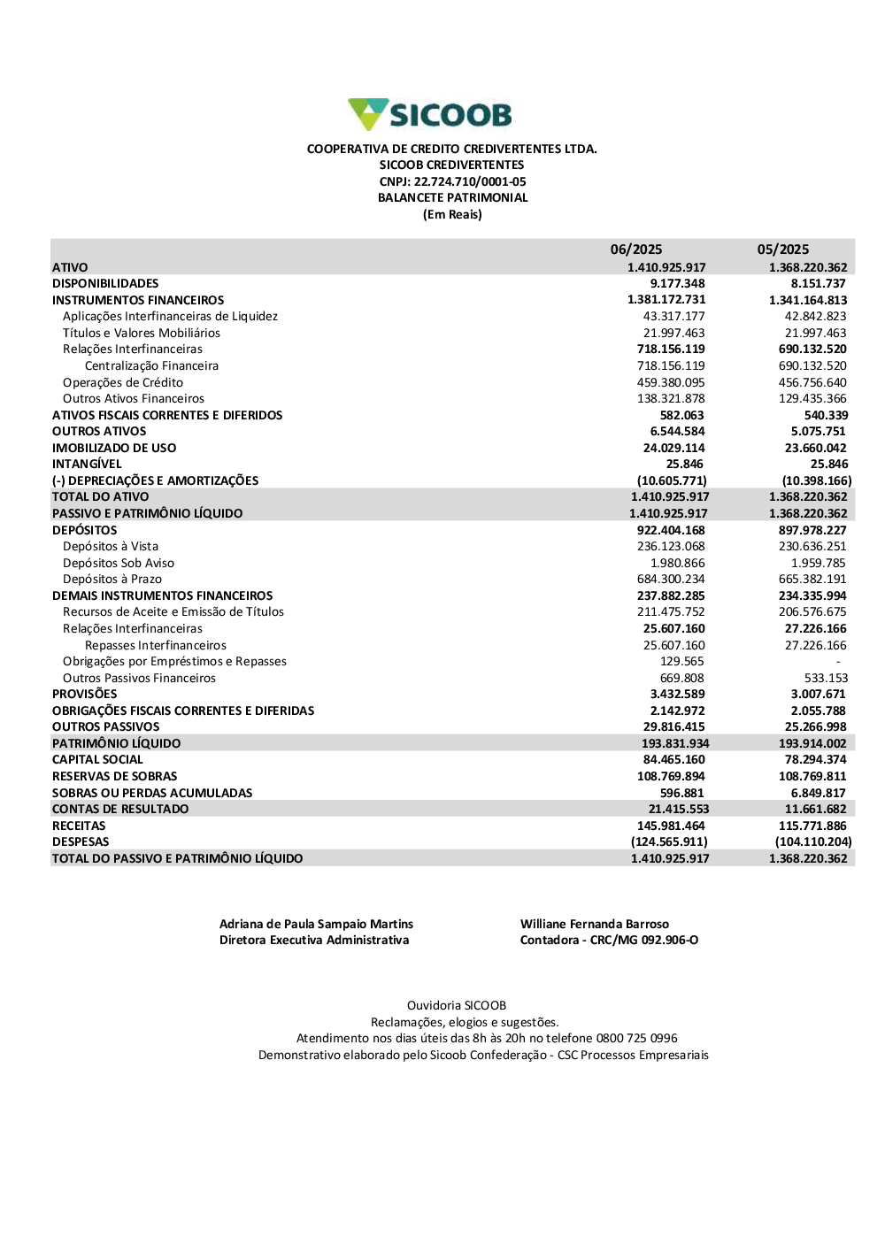 Balanços Contábeis - Sicoob Credivertentes