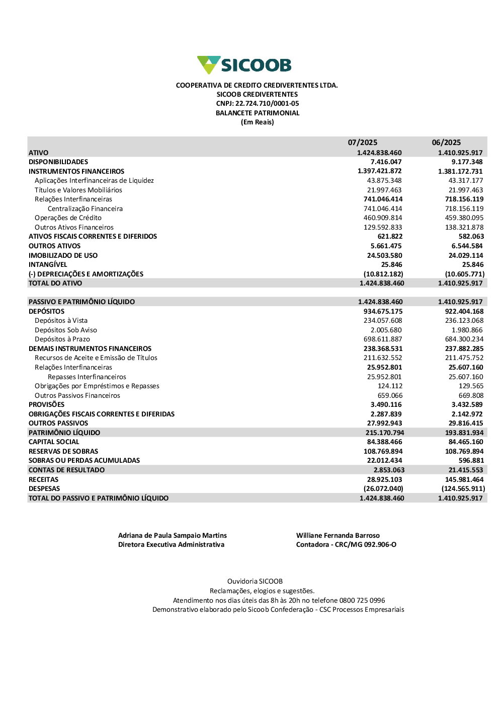 Balanços Contábeis - Sicoob Credivertentes