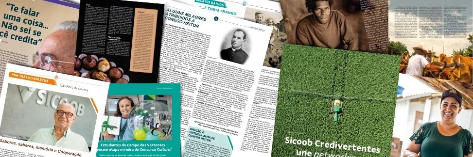 Cooperar é agir em conjunto. É pensar em economia e desenvolvimento por e para as pessoas. Por isso, o Sicoob Credivertentes mantém projetos próprios voltados à preservação da memória popular com o boletim Sabores & Saberes; à inspiração com histórias de vida, negócios e comunidades na revista Vertentes Cultural; a informações sistêmicas e financeiras com o Caderno Informativo. Tudo isso além de livros diversos, incluindo biográficos, todos gratuitos.
