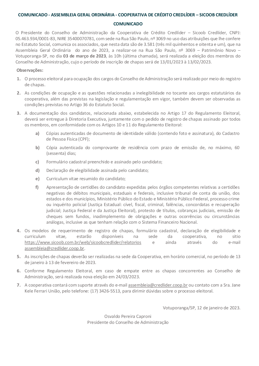 Microsoft Word - COMUNICADO - ELEIÇÃO CA (003)_revisão Central
