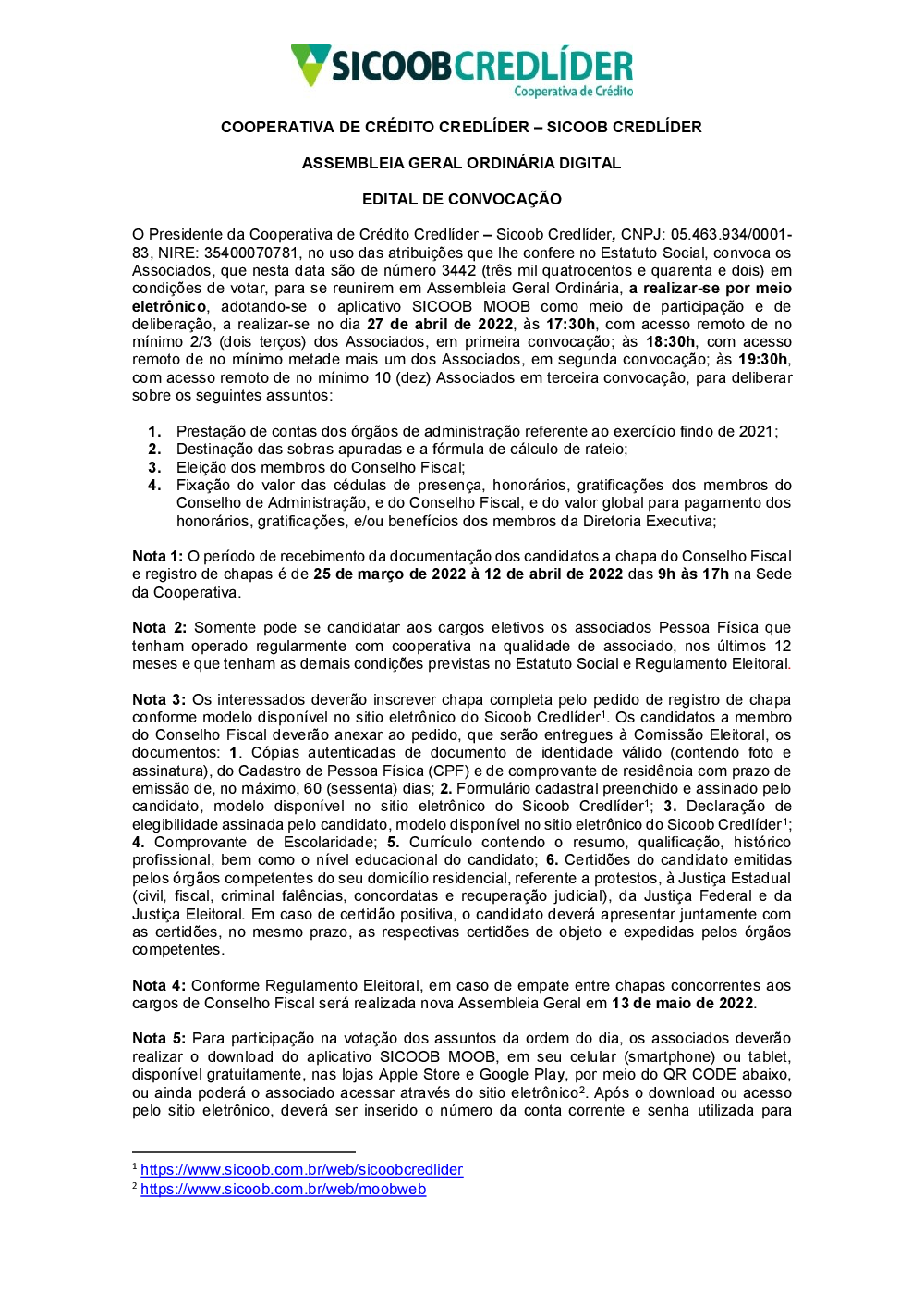 Edital de Convocação AGO 2022 - Sicoob Credlíder .pdf