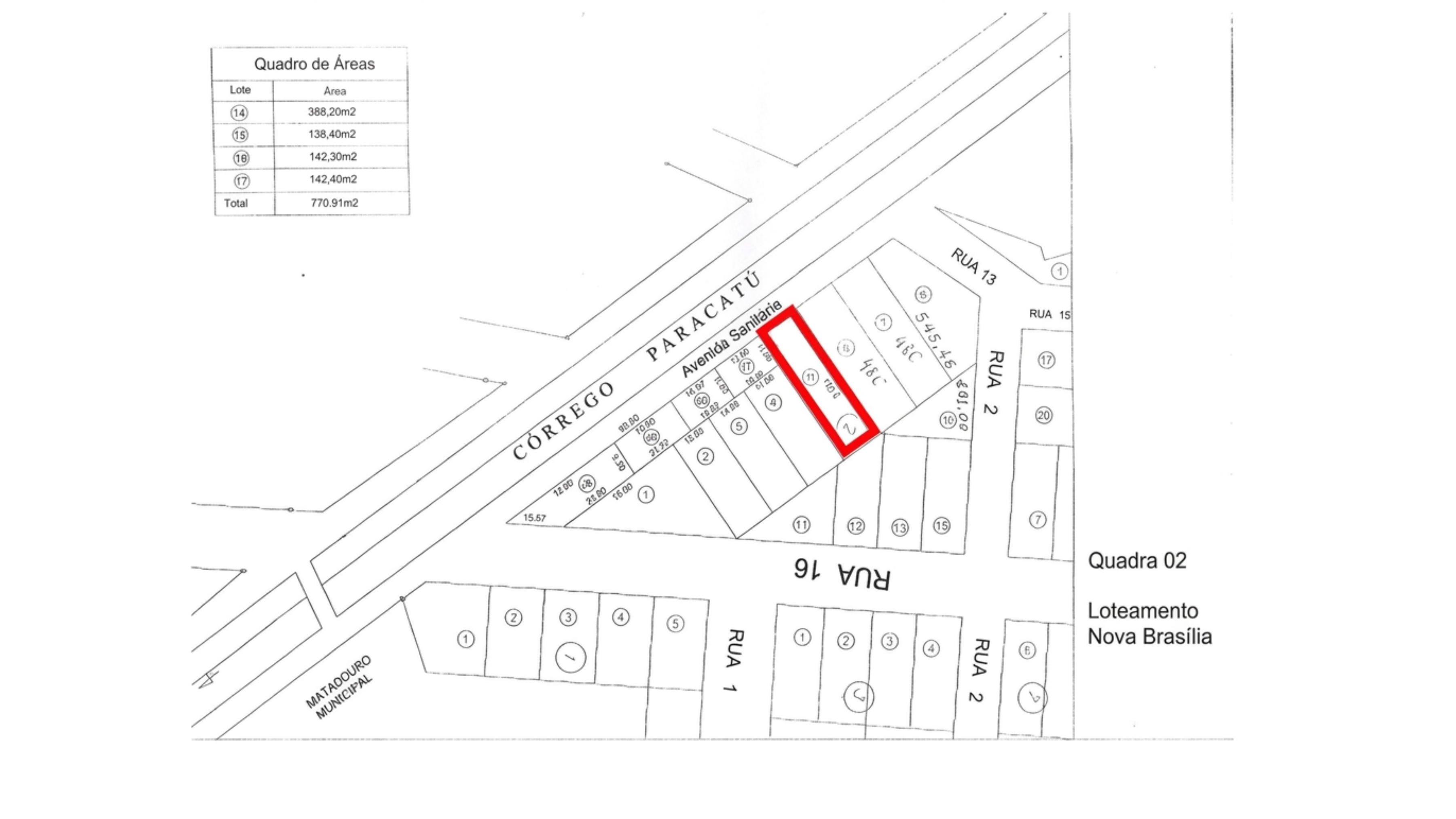 Trata-se de um lote de terreno urbano nº 05 da quadra 02, com área total de 480,00m² (quatrocentos e oitenta metros quadrados), integrante do Loteamento denominado Nova Brasília, situado na cidade de Brasília de Minas - MG, conforme Memorial Descritivo e Planta elaborados pelo Engenheiro Agrimensor Umberto Eustáquio Pereira Neves (CREA 56628/D), ART nº 1420200000006449255.
