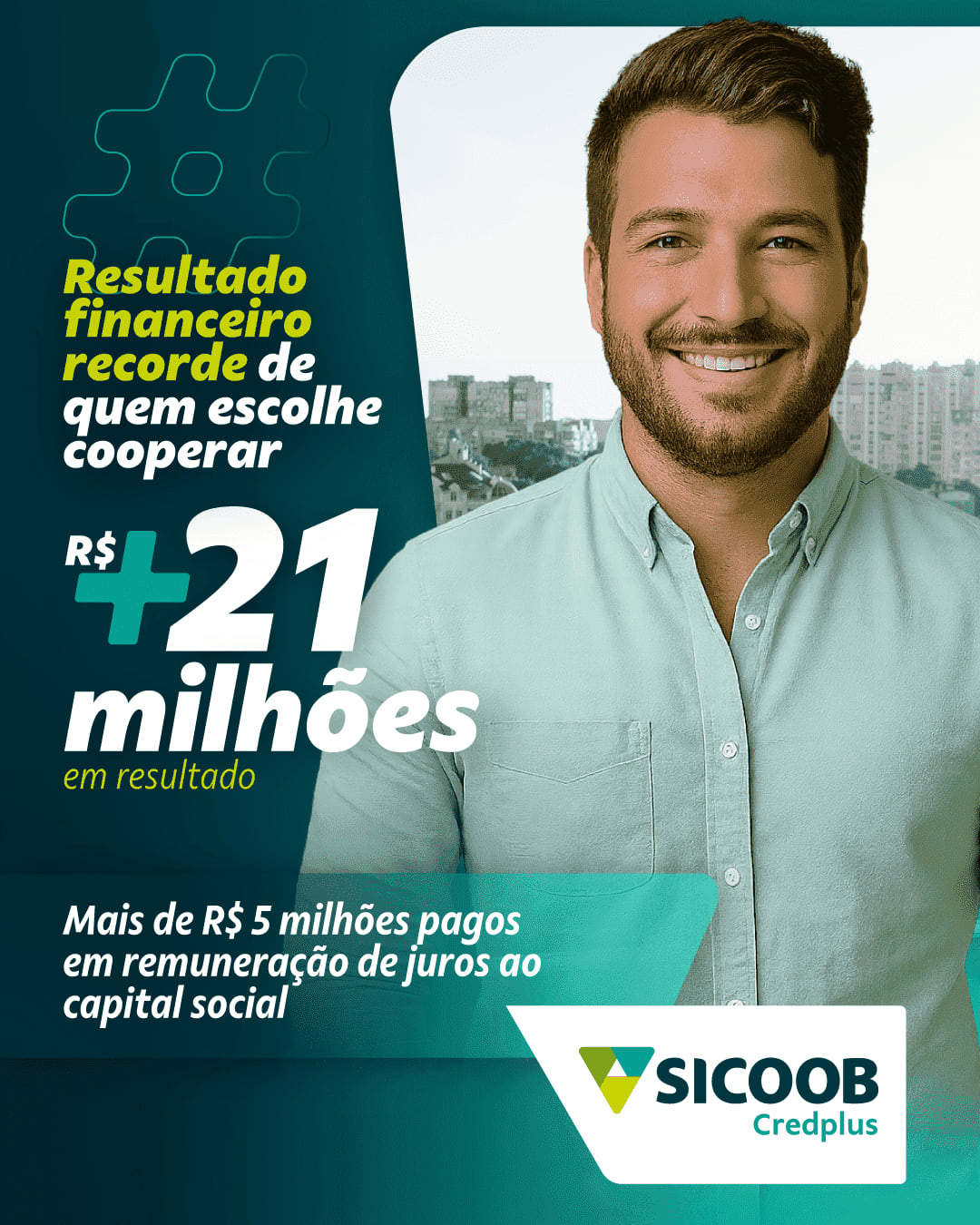 O ano de 2025 trouxe um resultado que demonstra, na prática, tudo aquilo que torna o cooperativismo um modelo diferenciado. O Sicoob Credplus registrou mais de R$ 21 milhões em resultado financeiro, desempenho construído coletivamente por mais de 33 mil cooperados.