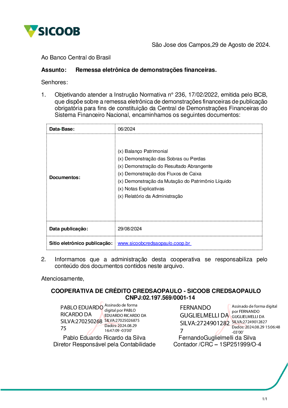 Demonstrações Financeiras 1º Semestre/2024 - Arquivo 9010