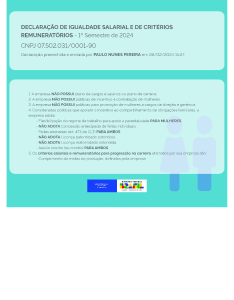 DECLARAÇÃO DE IGUALDADE SALARIAL E DE CRITÉRIOS REMUNERATÓRIOS