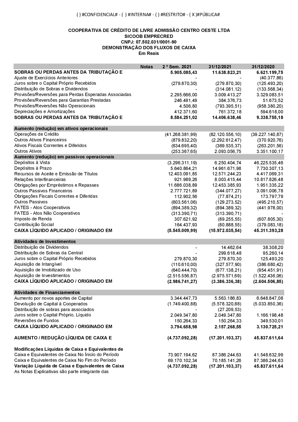 DEMONSTRAÇÃO DOS FLUXOS DE CAIXA 2021