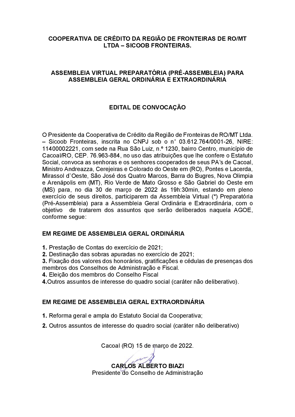 03/2022 - Edital Pré-Assembleia (RO e MT)