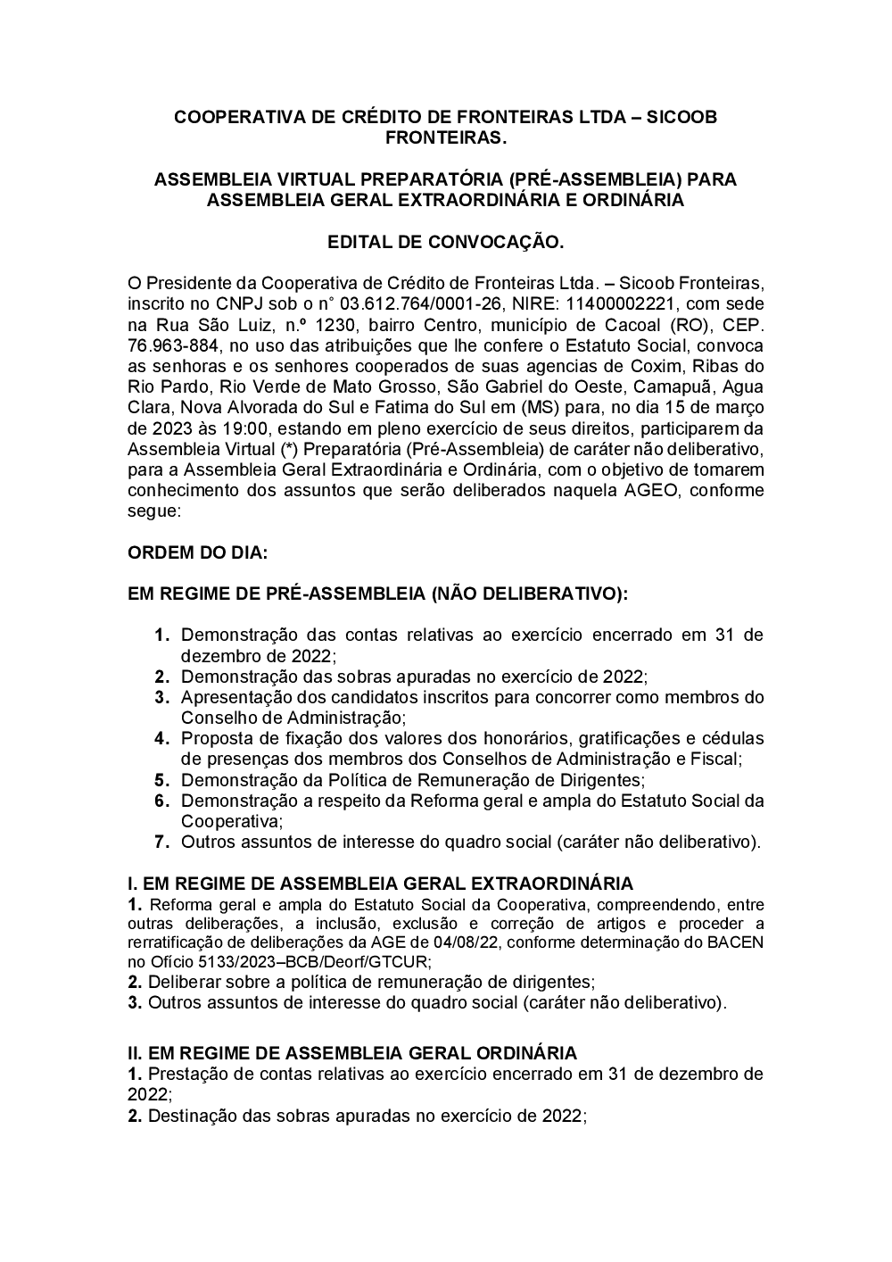 - Edital (MS) de convocação da Pré-Assembleia - Março de 2023.