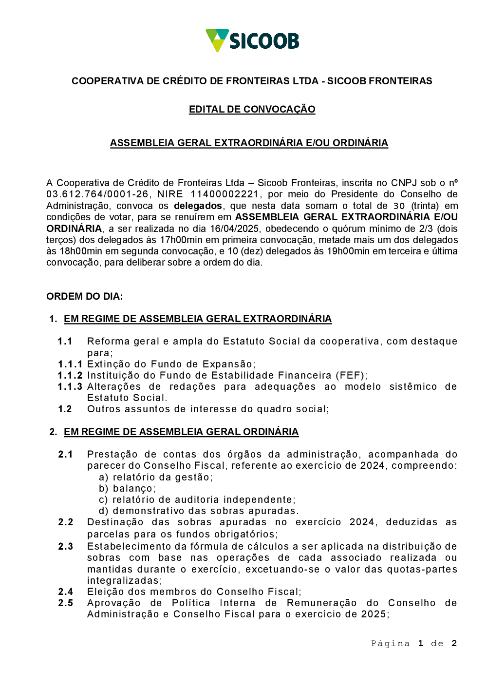 Relatórios - Sicoob Fronteiras