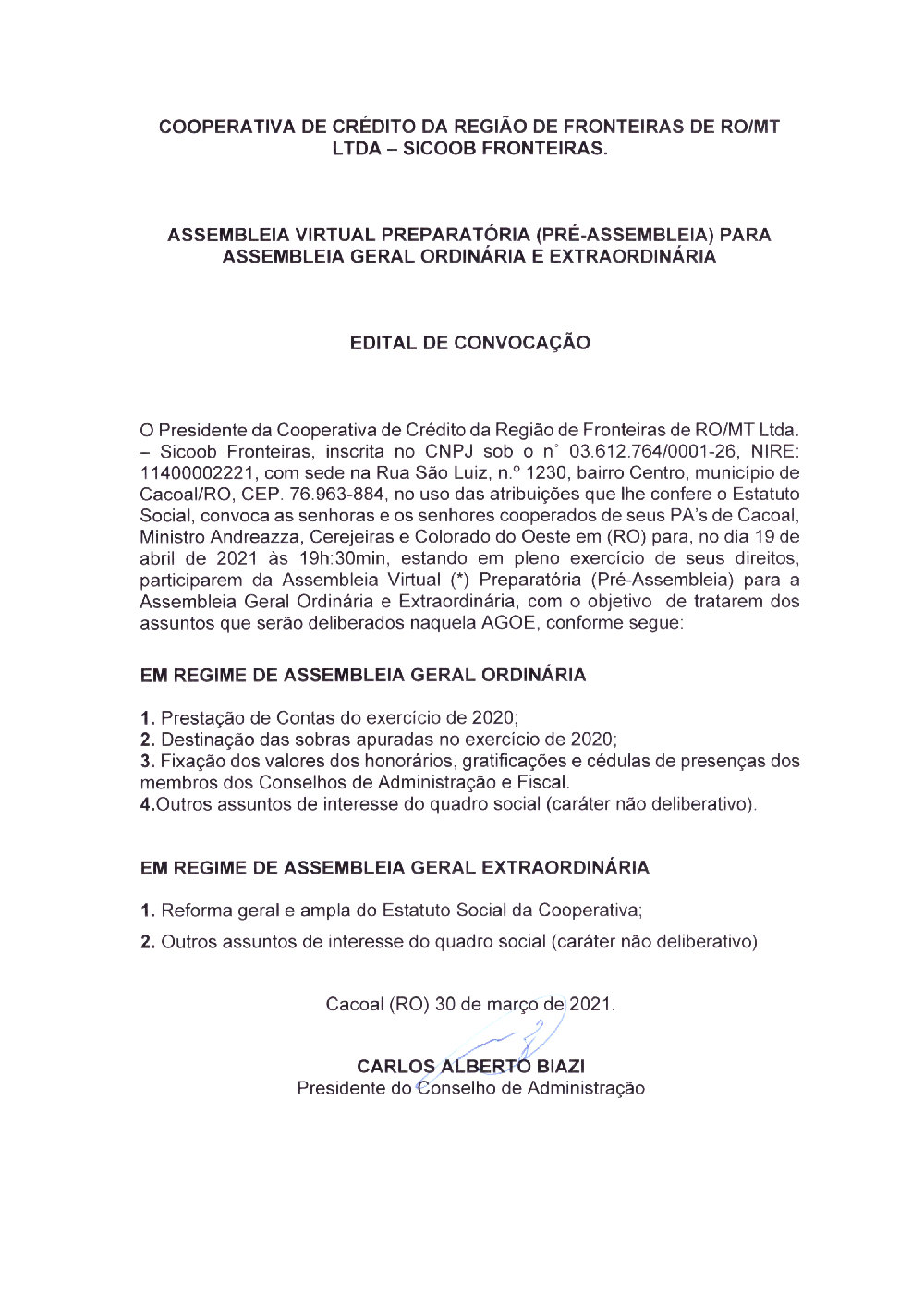 - Edital (RO) de convocação da Pré-Assembleia - Abril de 2021.
