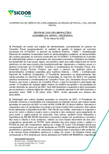 ASSEMBLEIA GERAL ORDINÁRIA Março 2022 - Relatórios - Sicoob Frutal