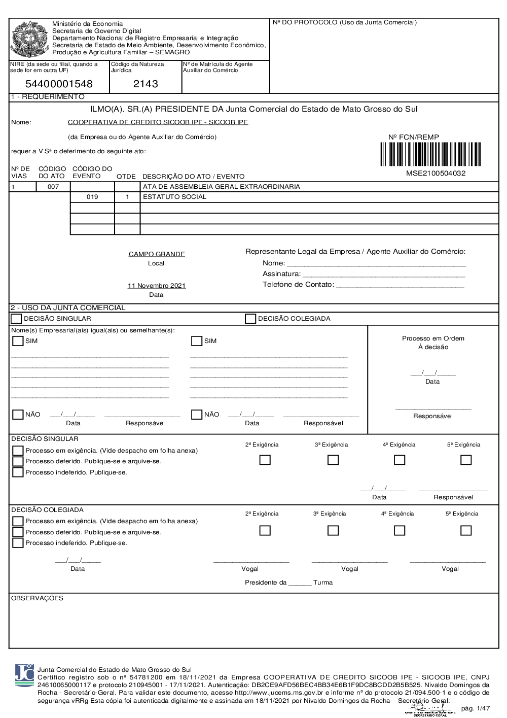 - Estatuto Social vigente do Sicoob Ipê para que o cooperado possa conhecer as normas que norteiam a Cooperativa.