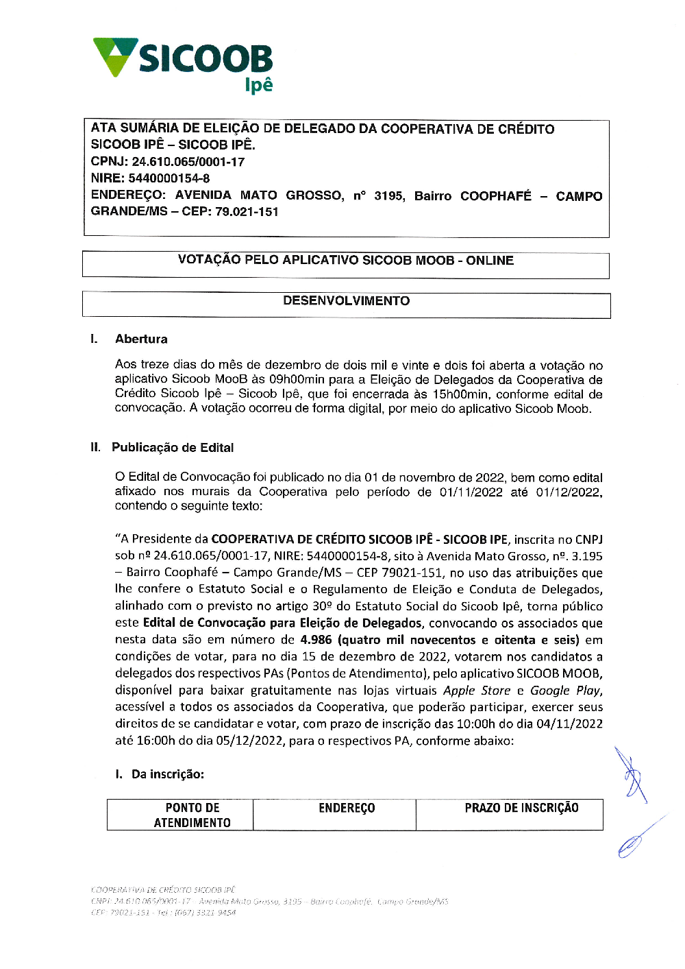 ATA SUMARIA DE ELEIÇÃO DE DELEGADOS 2022