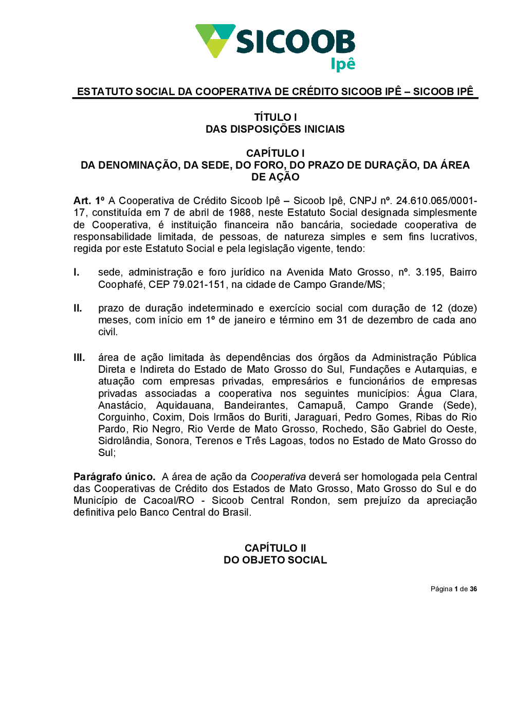 - Minuta do Estatuto do Sicoob Ipê a ser aprovado na AGO 2023 - proposta