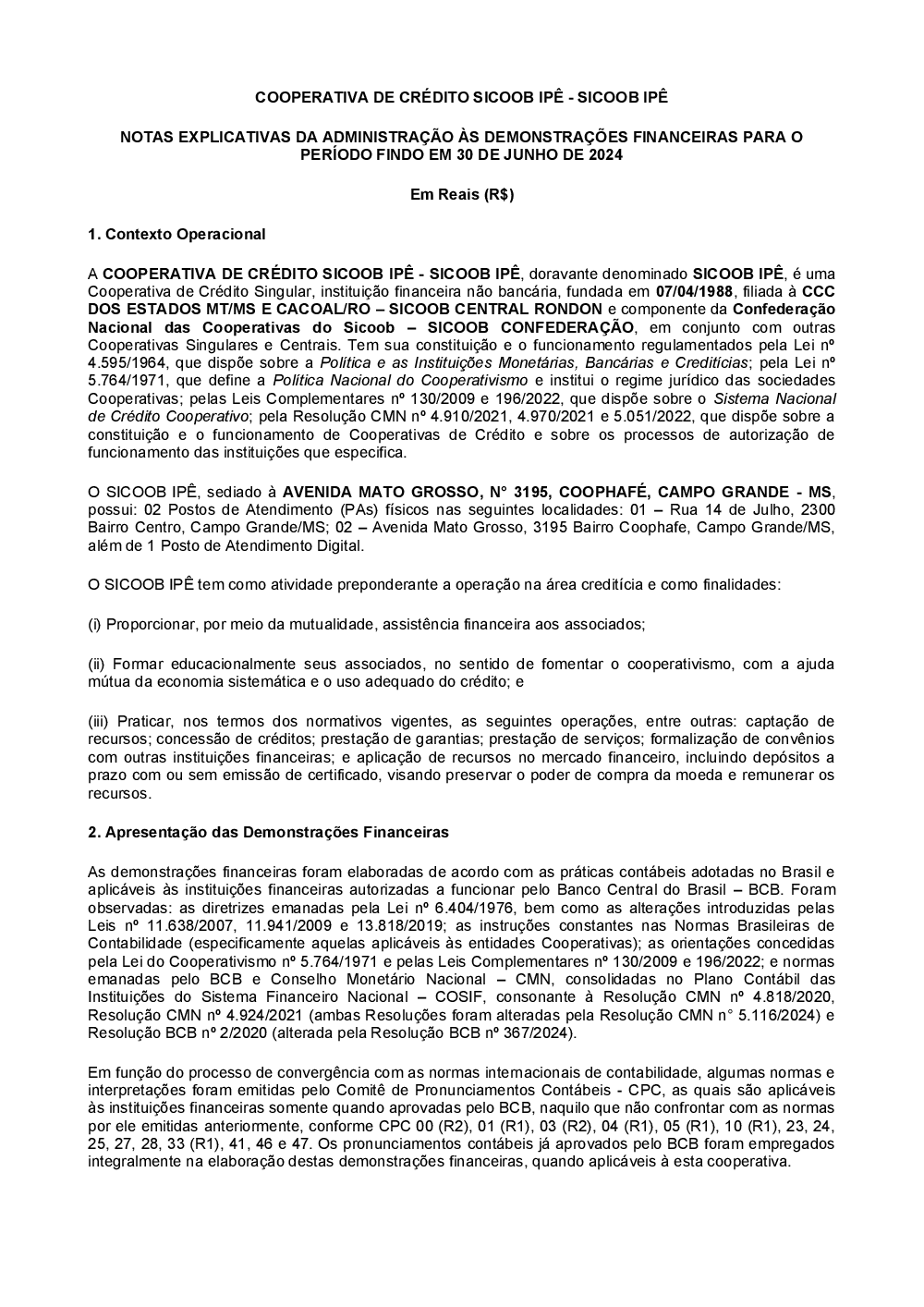 - NOTA EXPLICATIVA DAS DEMONSTRAÇÕES FINANCEIRAS 1º SEMESTRE DE 2024