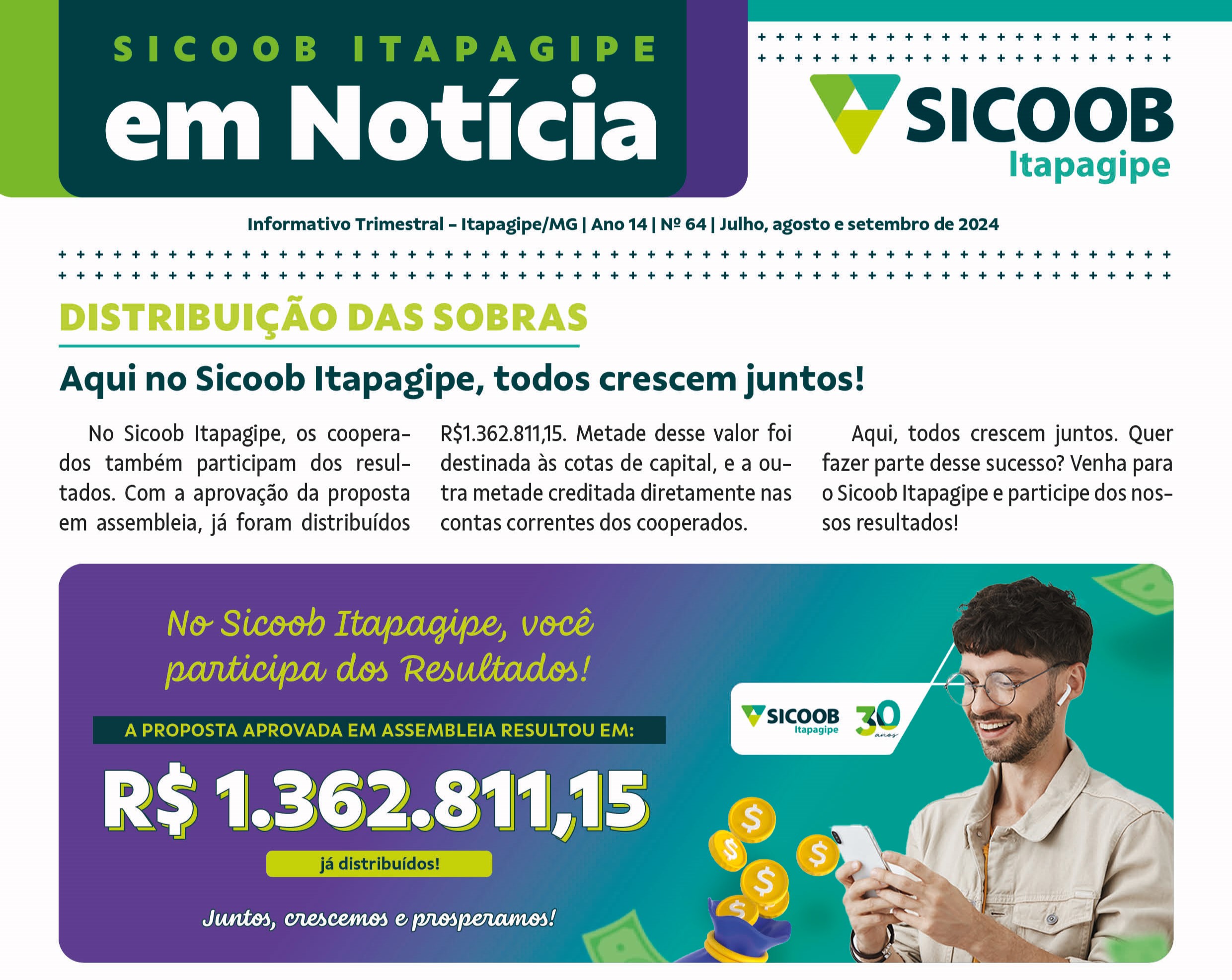 Chega ainda nesta semana a versão impressa do "Sicoob Itapagipe em Notícia", o informativo trimestral da nossa cooperativa, que está em sua edição de nº 64.