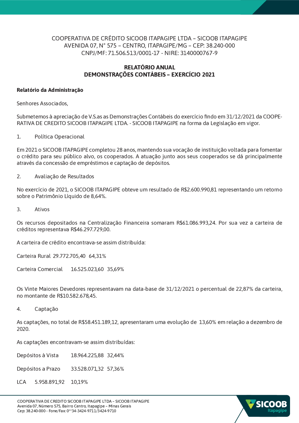 Demonstrações Contábeis 2021 - Sicoob Itapagipe