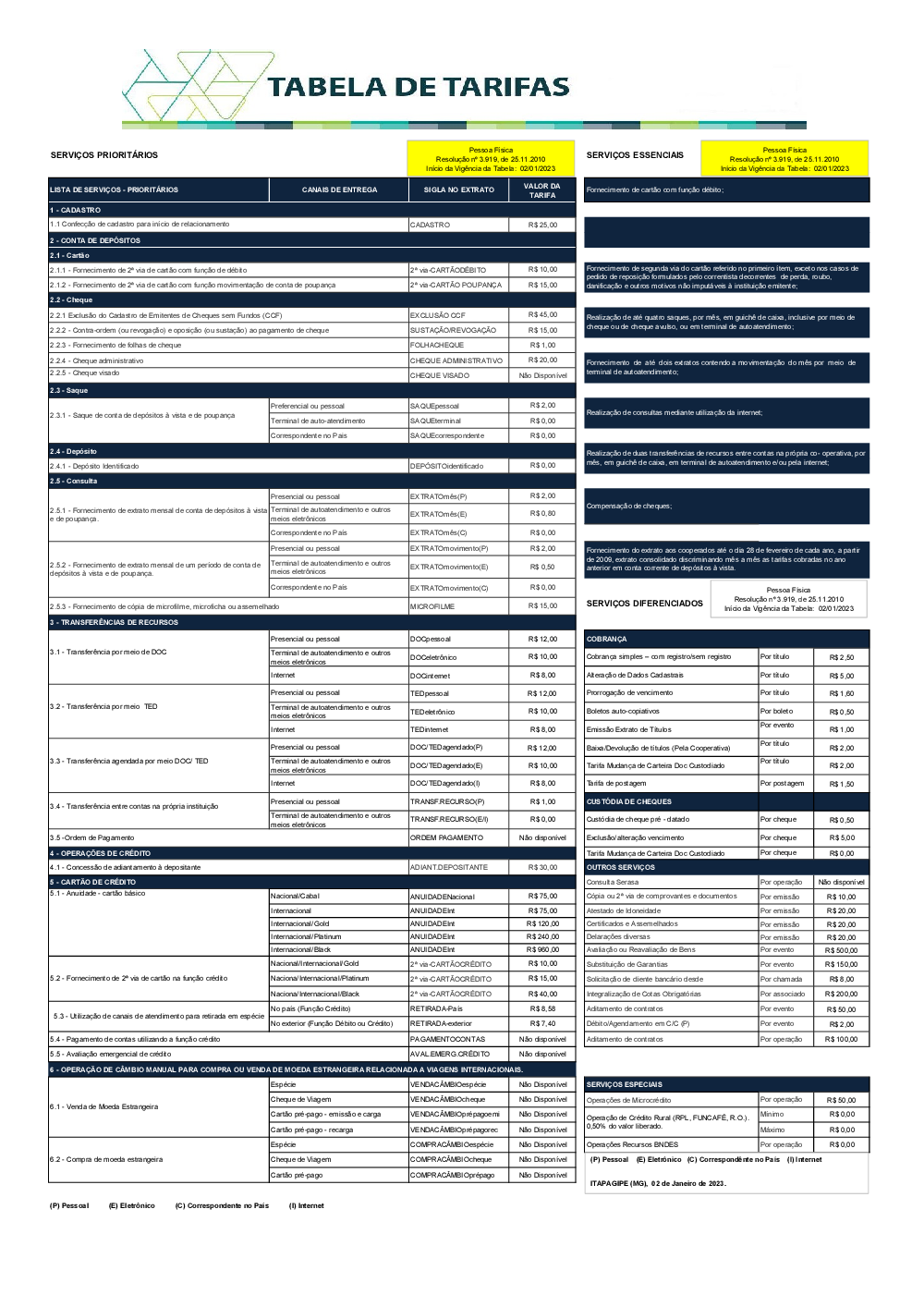 1-Tabela de Tarifas PF - 02.01.2023