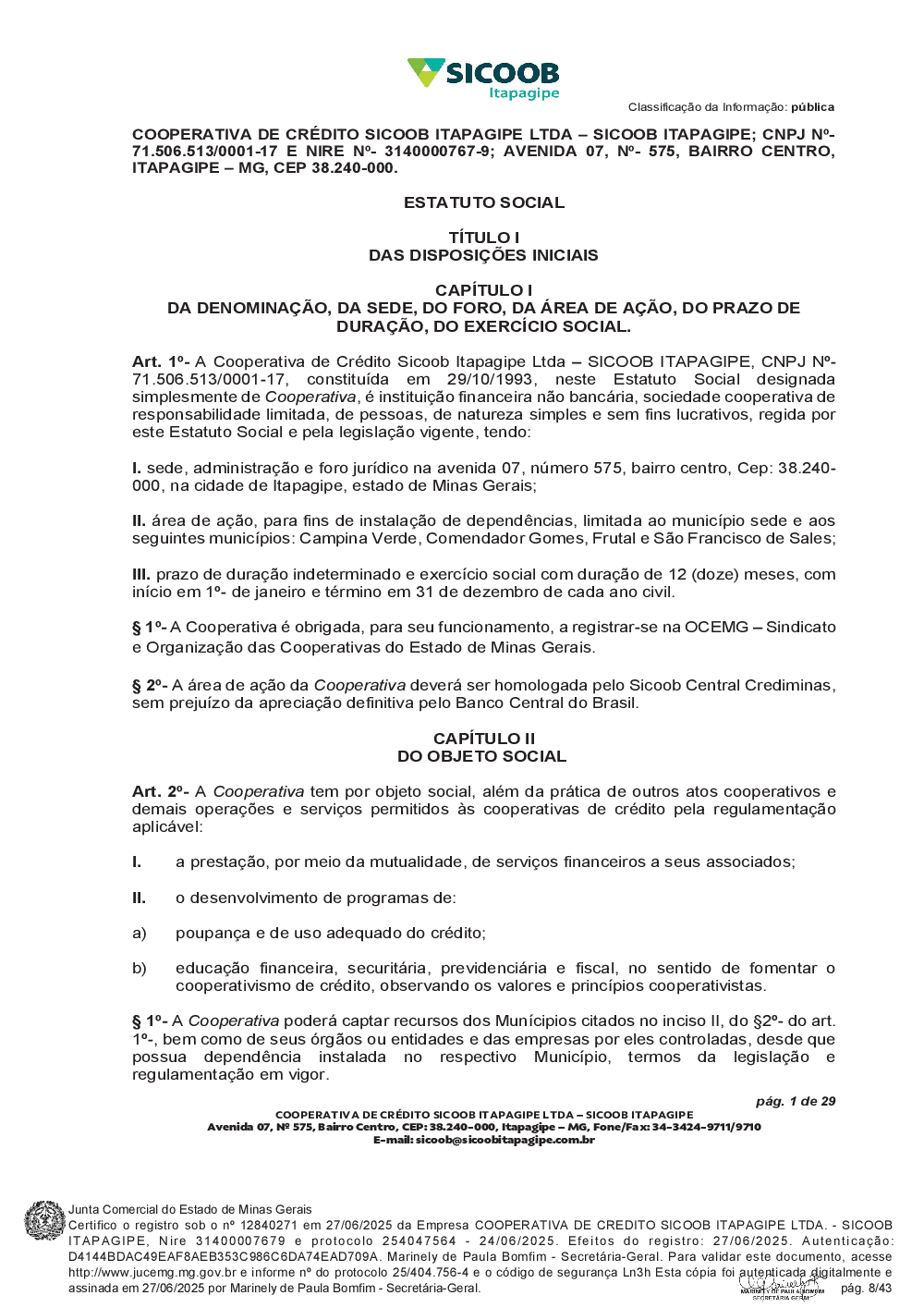 - Disponível o Estatuto Social vigente do Sicoob Itapagipe aprovado na AGE do dia 25 de março de 2025, e que já se encontra aprovado pelo BACEN e registrado pela Jucemg.