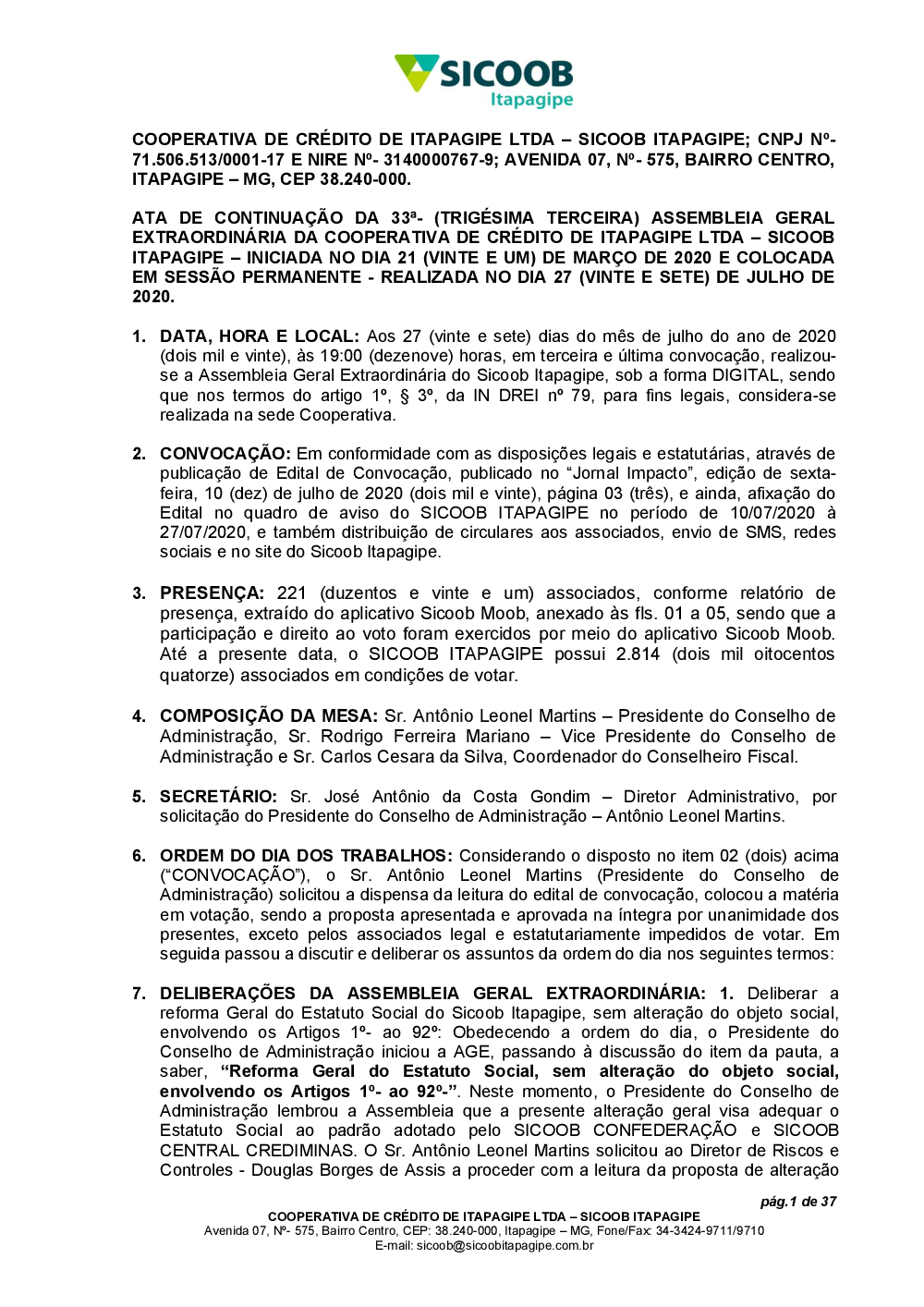 SICOOB ITAPAGIPE - ESTATUTO SOCIAL - AGE 2020_27.07.2020