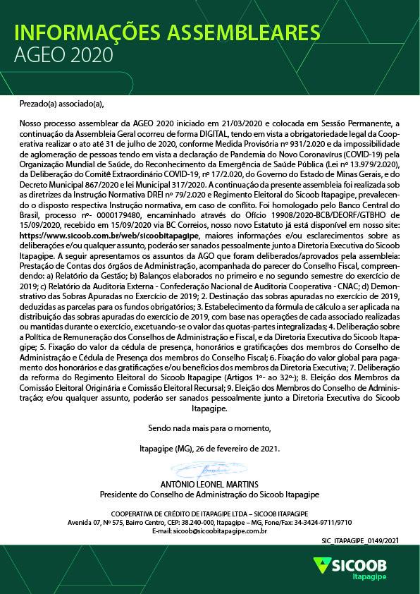 AGEO 2020 - INFORMAÇÕES ASSEMBLEARES